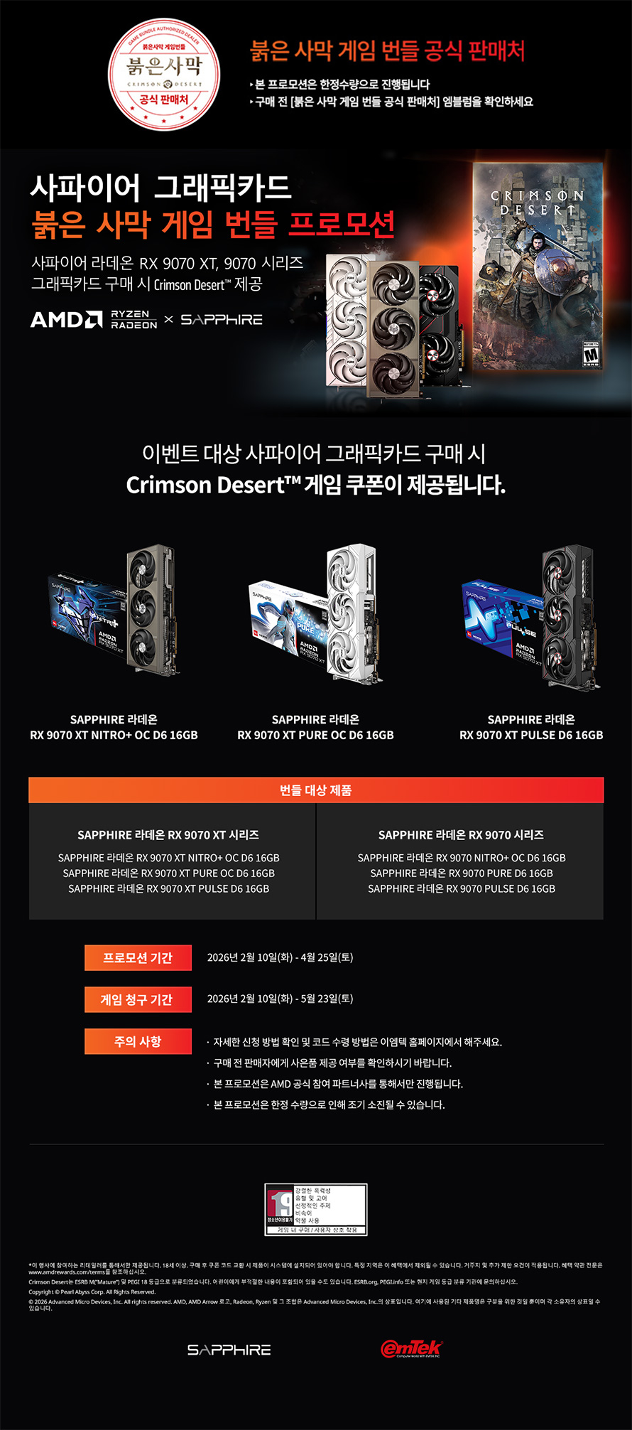 • SAPPHIRE 라데온 RX 9070 XT PURE OC D6 16GB